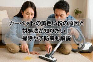 >>カーペットの黄色い粉の原因と対処法が知りたい!掃除や予防策も解説